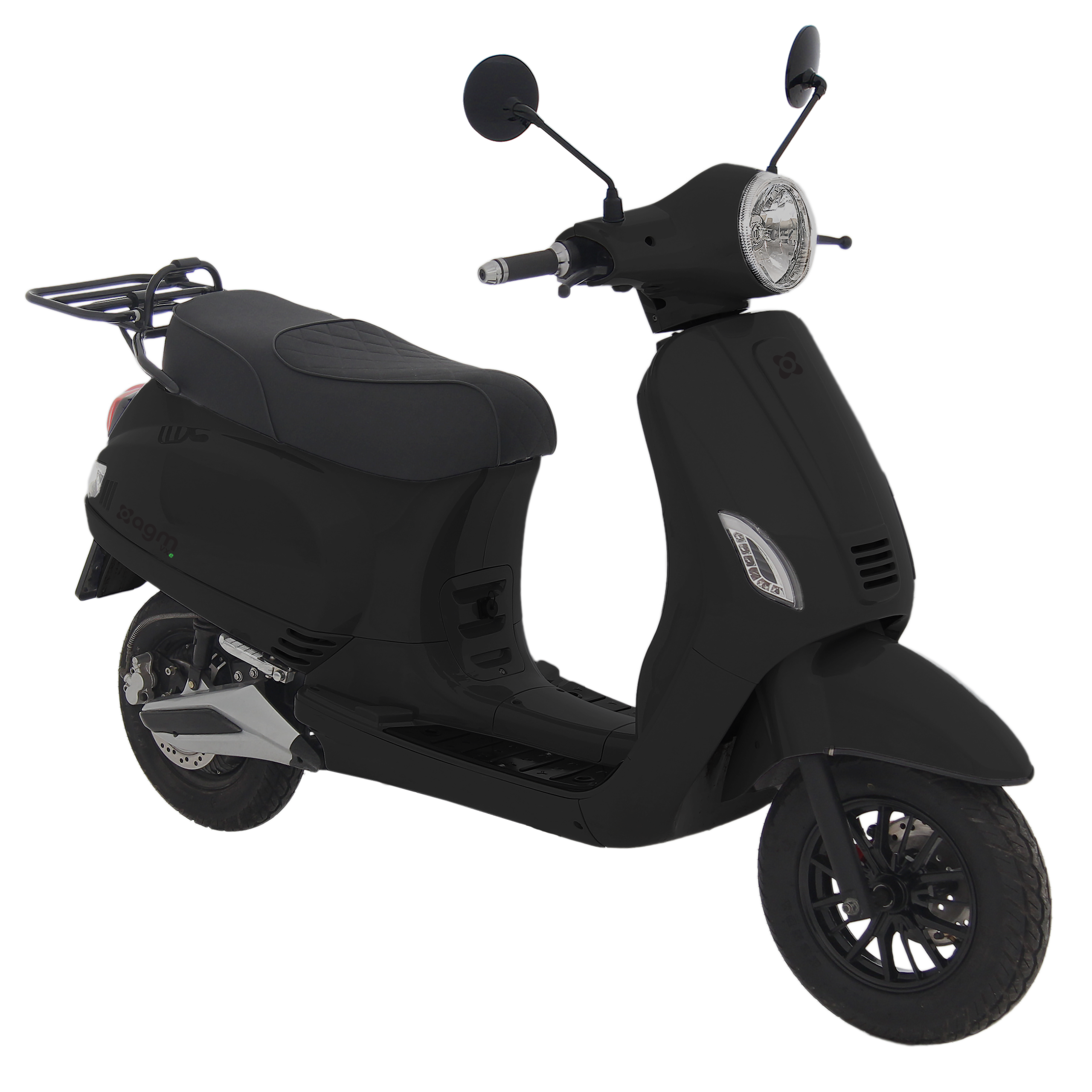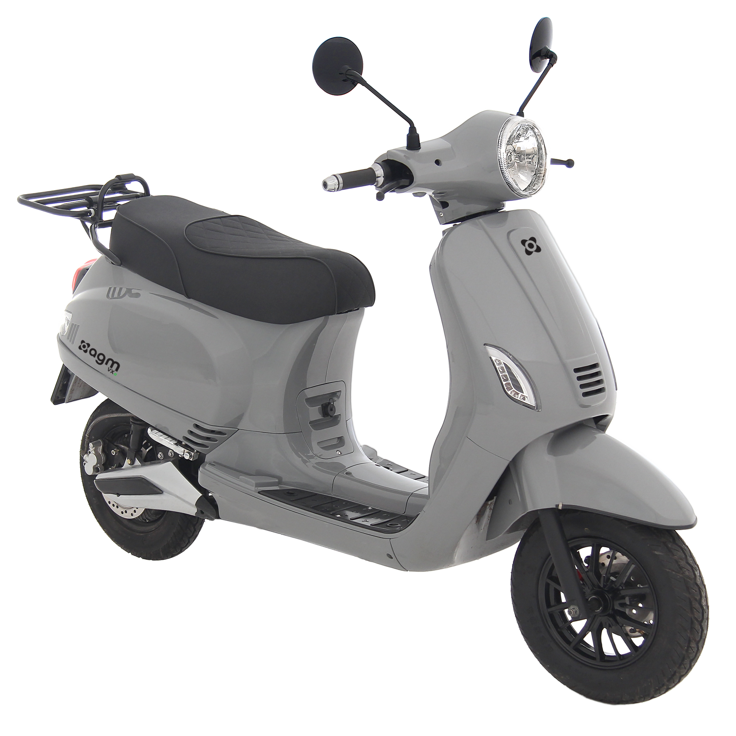 ) De AGM VXE is net als de VX50i. een AGM klassieker in een sportief jasje. Alleen dan elektrische. een luxe retro scooter, compleet en bijzonder mooi om te zien. Naast LED knipperlichten en een USB aansluiting in het voor vak , beschikt hij ook over een fraai afgewerkt zadel, luxe voetsteps voor de passagier, en een chique voetplateau. Stijlvol uiterlijk gecombineerd met comfort en rijgemak, Bekende looks van de AGM VX-familie & Opvallend door het zadel met diamantpatroon