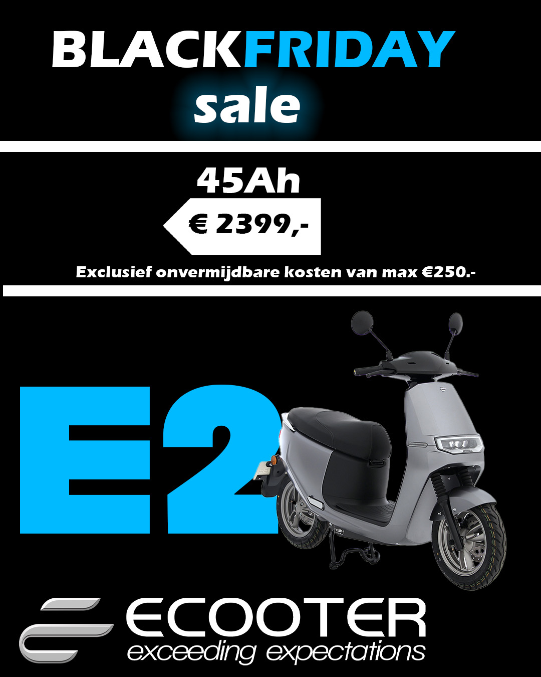 Het paradepaardje van de Ecooter modellen. De E2 is voorzien van een krachtige middenmotor en unieke overbrenging. De scooter bezorgt je een geweldige rijervaring en heeft een actieradius tot wel 175km!