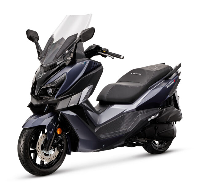 De Cruisym Alpha 125 cc motorscooter laat een onuitwisbare indruk achter met zijn gestroomlijnde design, opvallende kleuren en duidelijke ambitie om de concurrentie in het segment van sportieve GT-maxiscooters te overtreffen.